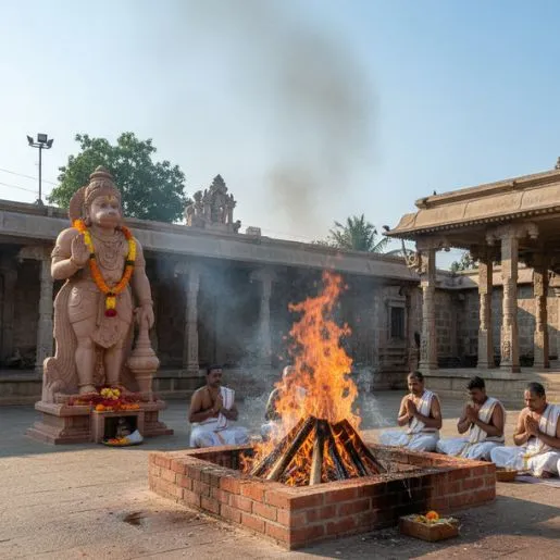 Every Hanuman Homam at Tirikala is conducted by experienced Agamic priests following the ancient scriptures. From the precise muhurta selection to mantra chanting and sacred offerings, each step is designed to invoke Lord Hanuman’s divine strength and protection, ensuring maximum spiritual benefit.