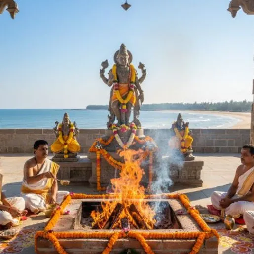 Tirikala conducts Thila Homam at the sacred Thirupullani kshetra, guided by Agamic and Siddhar-rooted priests. We offer personalized astrology, livestream access, transparent pricing, and sacred prasadam delivery—blending ritual purity with technological ease and trust.