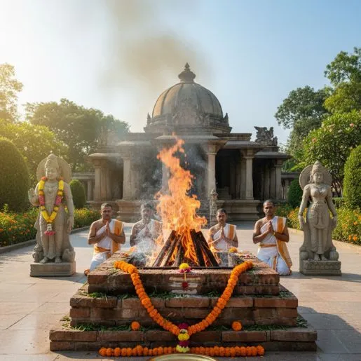 Venus Homam is a sacred Agamic fire ritual invoking Shukra Graha to enhance love, beauty, fertility, wealth, and creative energy. It is ideal for those facing relationship issues, marital delays, fertility problems, or low self-worth linked to Venus afflictions.