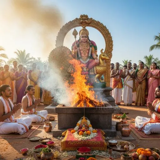 இந்த ஹோமம், உங்கள் பெயர், நட்சத்திரம் மற்றும் பிரார்த்தனையின் அடிப்படையில் தனிப்பயனாக்கப்பட்டு, முருகப்பெருமானின் தெய்வீக ஆற்றலை உங்கள் வாழ்க்கையில் எதிரிகளைத் தடுக்கவும், பாதுகாப்பும் ஆதரவும் பெறவும் வடிவமைக்கப்படுகிறது.
