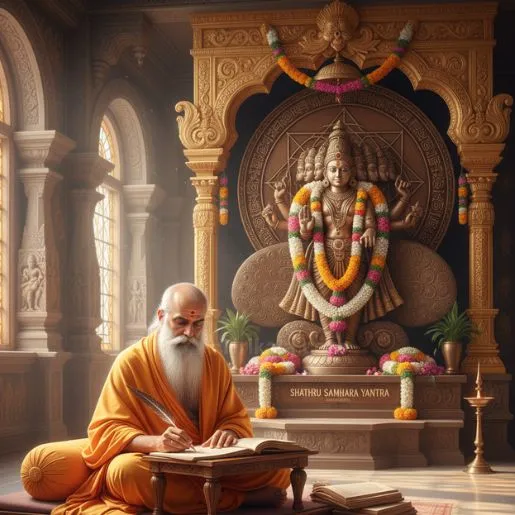 சத்ரு சம்ஹார யந்திரம் என்பது தீய எதிரிகளின் தாக்கம் அகற்றல், சட்ட வழக்கு வெற்றி மற்றும் தைரியமான மனநிலை வழங்கும் தெய்வீக ஆற்றல் கொண்டதாகும். இப்போது ஆன்லைனில் பதிவு செய்து, பூஜை செய்யப்பட்ட யந்திரத்தை உங்கள் வீட்டு முகவரியில் நேரடியாகப் பெறலாம்.